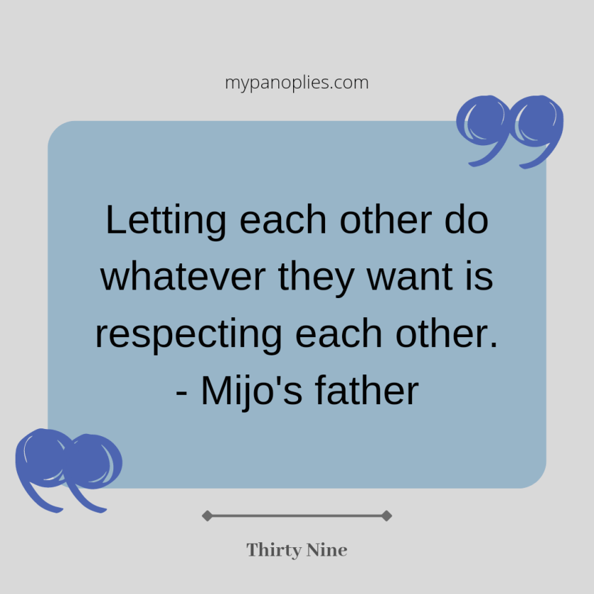 “When our bodies get sick, we either get surgery or take medicine. When our minds get sick, we should get good rest.” – Mijo’s father